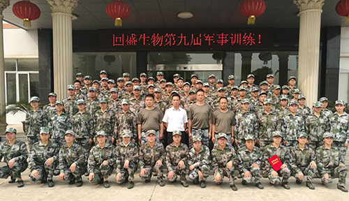 回盛生物傳承了軍訓的優良傳統,本次第九屆軍事訓練旨在提高參訓人員的儀表姿態和頑強扎實的工作作風,使每一個參訓人員由儀表姿態到行為表現思維方式都能得到一個嶄新的提高和升華。通過軍訓讓員工擁有高昂的斗志和飽滿的熱情,以更嶄新的面貌投入到自己的本職工作中,為企業創造新的輝煌!
