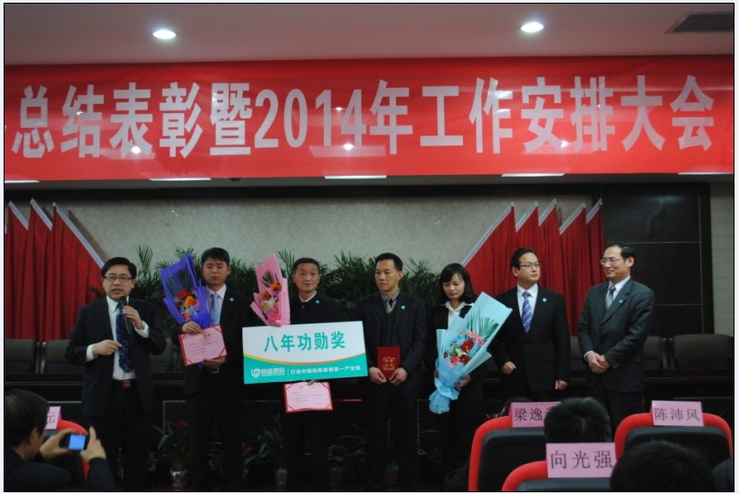 丁文格丁總,在公司辦公的同事對他了解甚少,因為他常年累月扎根在一線。從飼料轉行到獸藥,他以最快的速度融入到這個行業,把以前先進的管理經驗應用到現在的工作。2013年,技術服務部從一個6人的小部門發展到19人的大團隊,匯集了博士、碩士等一批高級專業人才和資深的行業翹楚,形成了一個老中青相結合、經驗學歷互補的活力型團隊。管理近20名分散于全國各地的服務專家團隊,同時還要承擔技術服務工作,做事身先士卒,為人謙卑和藹,他向他的團隊傳播正能量,他年紀并不是最長的,卻贏得所有專家級老師們的擁戴和敬佩。