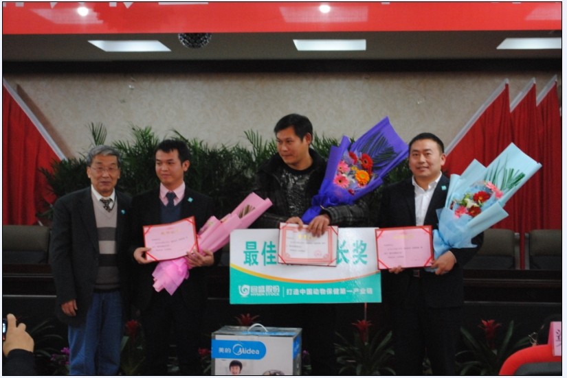 李興飛,對于前兩位獲獎者來說,算一名新人。來公司不長,從飼料跨行到疫苗,最后落腳回盛,在合肥市場,他要騎摩托車下豬場,風霜雨雪也是如此。小小的個子,撐起強有力的腰板,不怕苦不怕累,崎嶇的道路不是他的障礙,靠兩個輪子的摩托摘奪2013年度銷售桂冠。