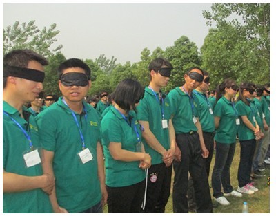 盲人摸號項目就是在完全丟棄視覺和聽覺的封閉狀況下完成的一個挑戰。拓展老師要求我們蒙上眼罩,不能發聲,然后發給每人一個數字,再打亂我們的站位,要在最短的時間內根據數字的大小順序排列站好。對于正常人來說再簡單不過的事,但是在這種眼、耳無用的狀況下顯得尤其困難。