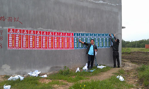 不知不覺一路貼到陳河鎮上,大家加快了進度,沒多久,古鎮主街道兩側的電線桿上就貼滿了回盛的品牌宣傳畫。我們驚喜的發現,鎮上一家希望獸藥店,在店門口醒目的位置還打出了“回盛股份新華星動保連鎖獸藥應城銷量第一”的標語。老板談起銷售業績一臉歡喜,看得出來回盛旗下的產品在鎮上比較暢銷,市場占有率很高。