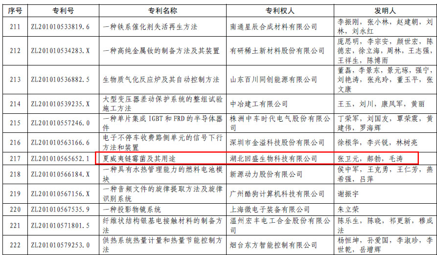 湖北回盛“夏威夷鏈霉菌及其用途”榮獲第十九屆中國發明專利優秀獎