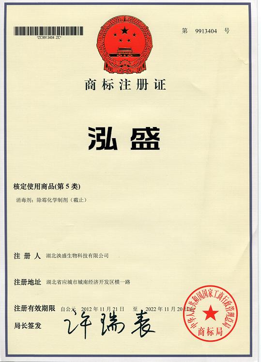泓盛商標注冊證